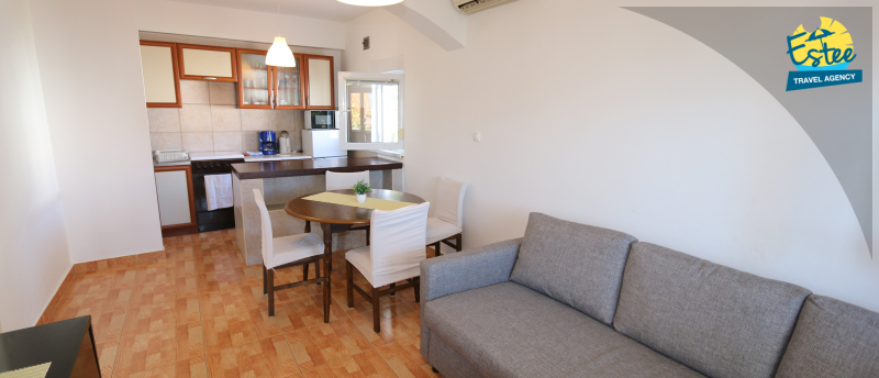 Vlastiti balkon, 1 kauč za spavanje za 1 osobu , Dnevni boravak, blagovaona i kuhinja su jedna prostorija., Pločice, Klima, SAT TV, Balkon s pogledom na more